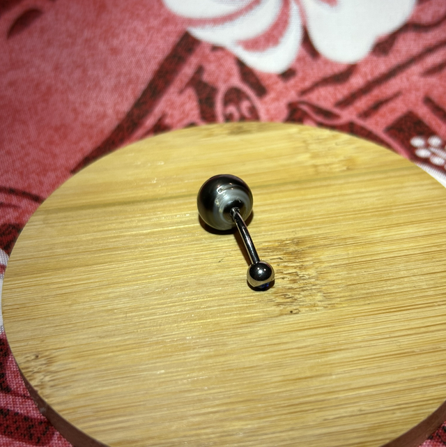 Piercing en acier chirurgical et perle de Tahiti de couleur grise foncée